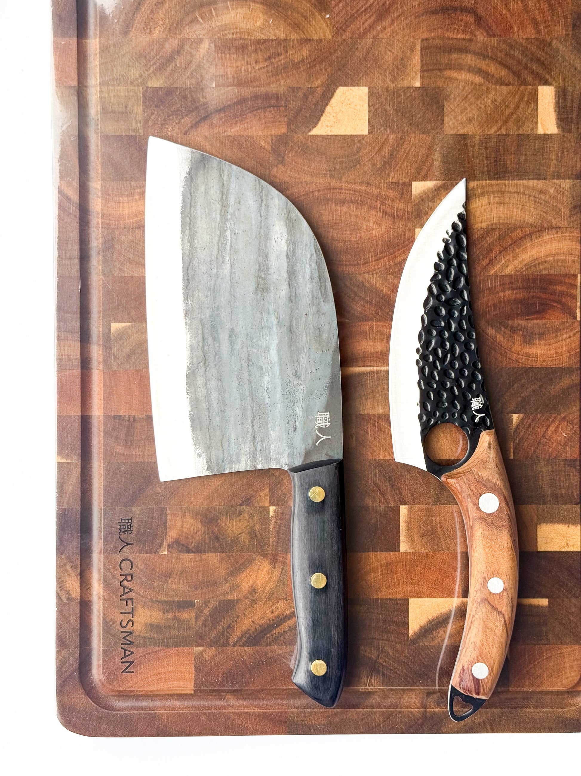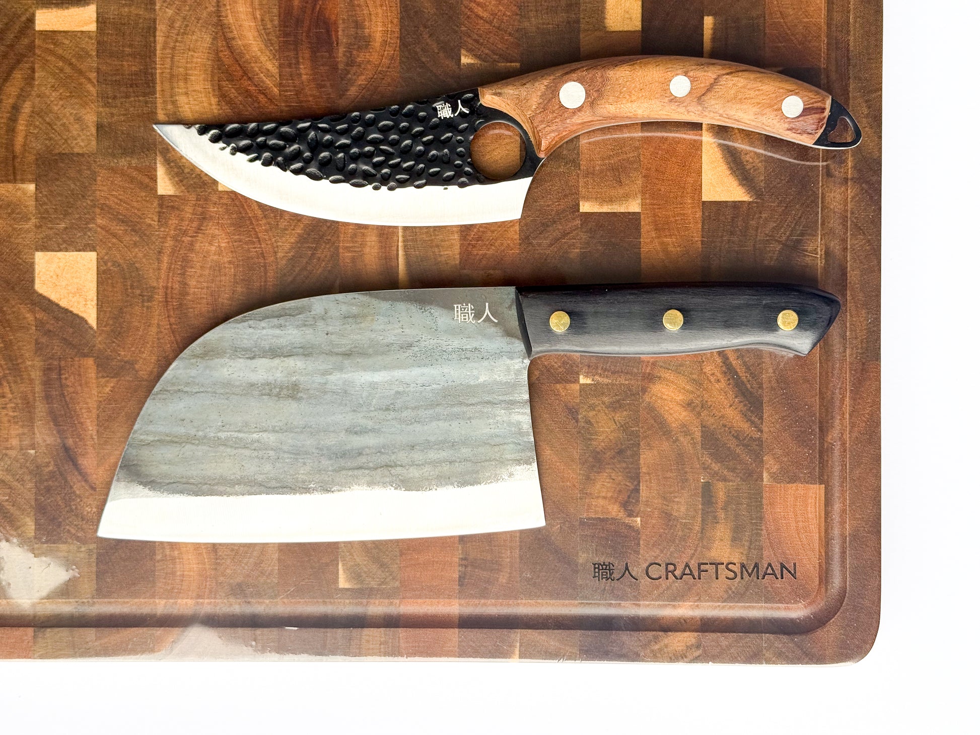 - Includes: Cleaver, Butcher Knife & Premium Acacia Chopping Board (size 36.5x24.5x2.8cm)