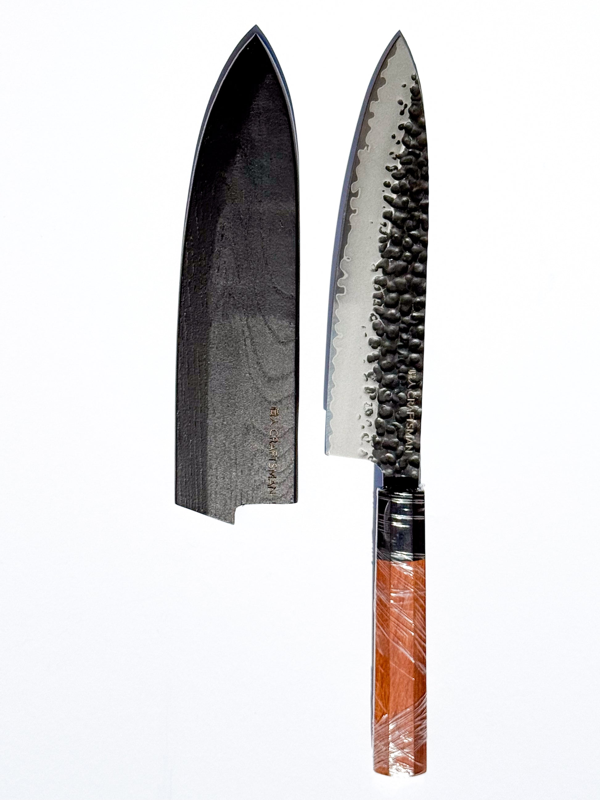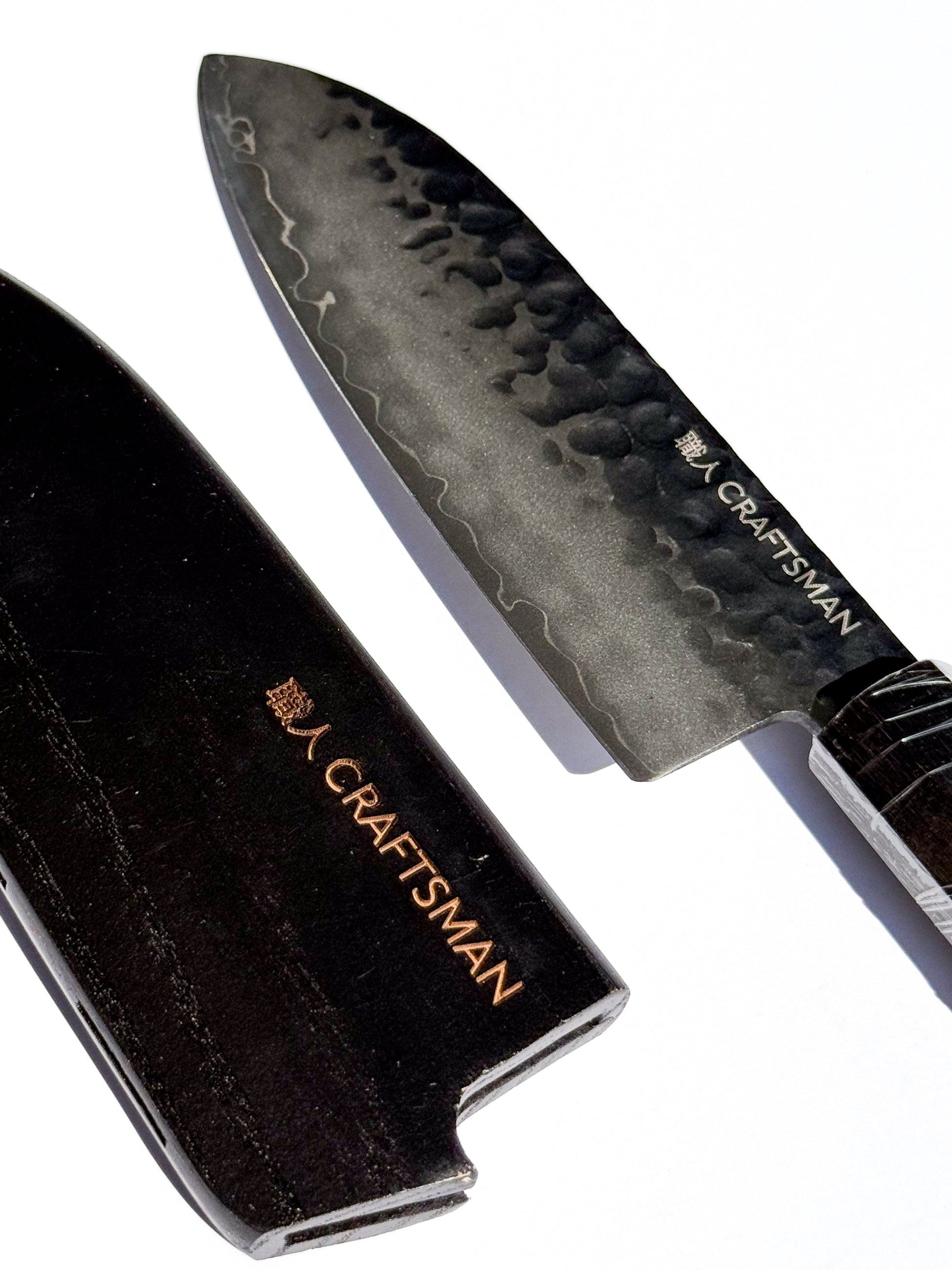 This premium 5-piece knife set blends performance, beauty, and tradition. Featuring a curated selection of blades for every task—from delicate prep to heavy-duty slicing—each knife is fitted with a unique ebony and mkuruti wood handle and comes with a matching wooden cover for protection and style.